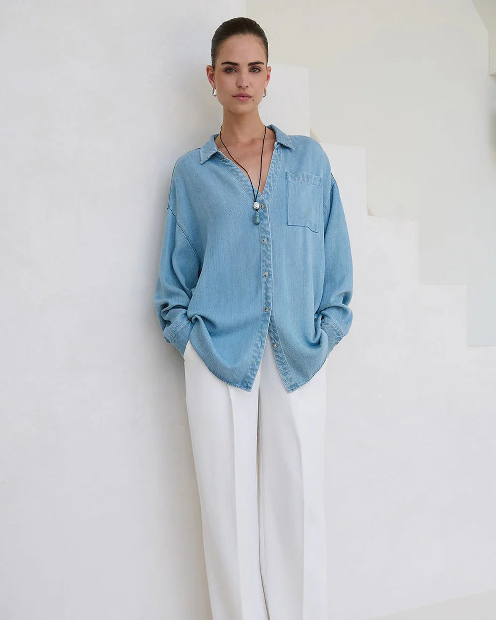 The Boisy Shirt in Lemon Grass is light, breezy, and just the right amount of undone. Designed with a loose fit, V-neckline, and adjustable tie at the hem, it’s made to move with you. The lightly structured fabric keeps it fresh and easy. Style tip: Pair with relaxed denim or shorts for a soft, sun-ready look.
