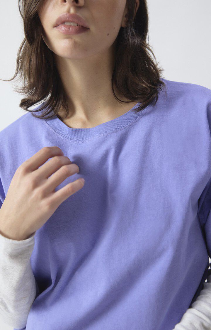 Het Fizvalley t-shirt voor dames is een is een iconisch item in de American Vintage-garderobe. Met zijn wat wijdere rechte pasvorm, ronde hals en korte mouwen heeft het een authentieke, tijdloze stijl. Het is gemaakt van dikke, gladde en compacte jersey en voelt gestructureerd aan met een vintage uitstraling. Het is verkrijgbaar in een breed scala aan kleuren en past in zowat elke stijl. Je draagt het op zichzelf of in laagjes onder een hemd of een sweater.