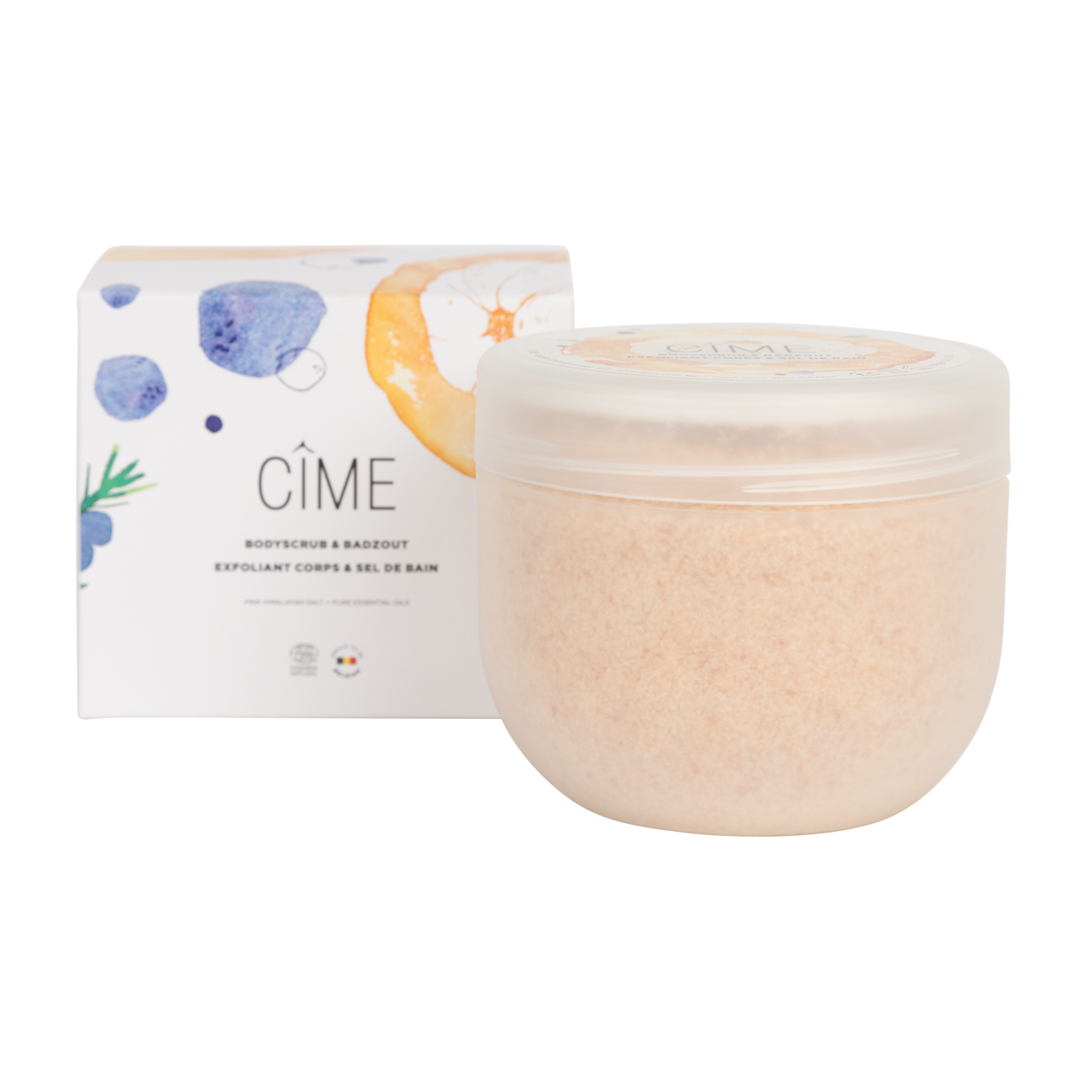De Magnificent Mandarine van CÎME is gemaakt op basis van roze Himalaya zout. Deze fijne zoutkristallen exfoliëren de huid, voor een zijdezacht effect.